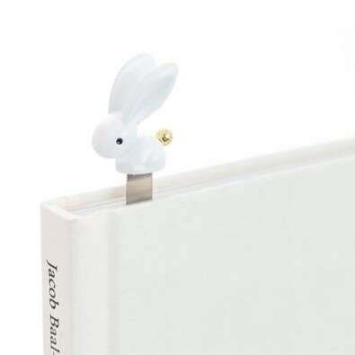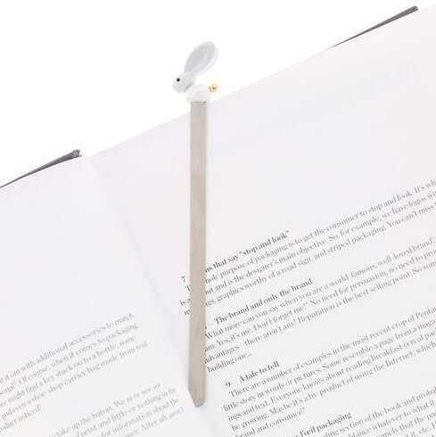 Üstünde altın kuyruklu beyaz bir tavşan bulunan bu ayraç, kitap kurtları için harika bir hediye.